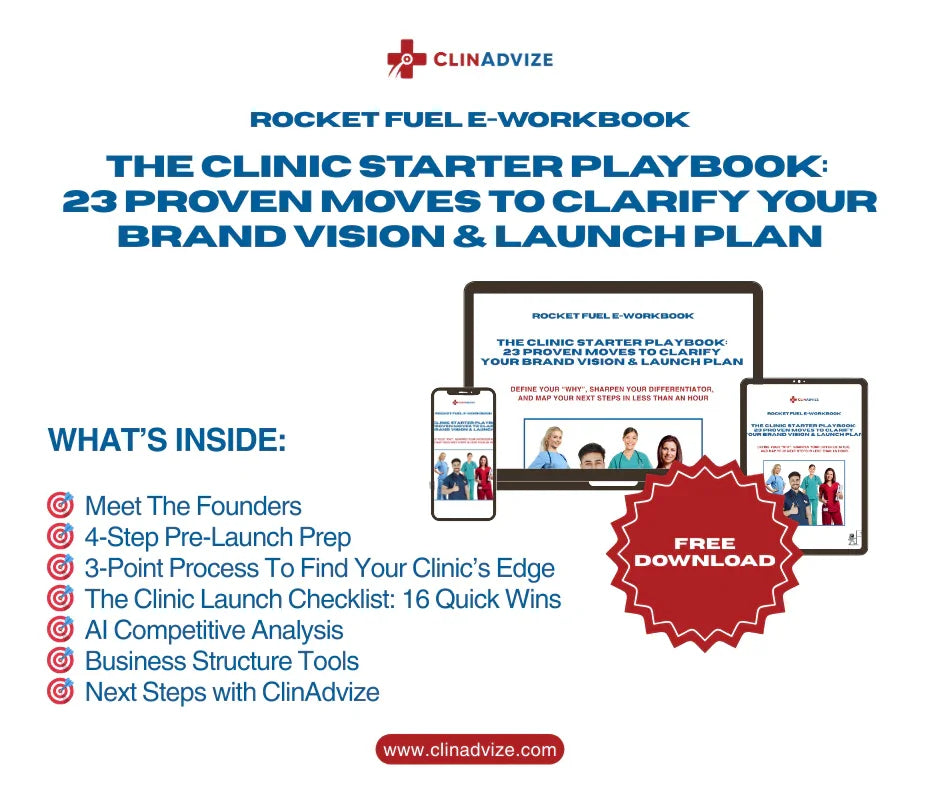Get your FREE copy today and start planning your standout clinic brand today! Includes access to The ClinAdvize Marketplace.